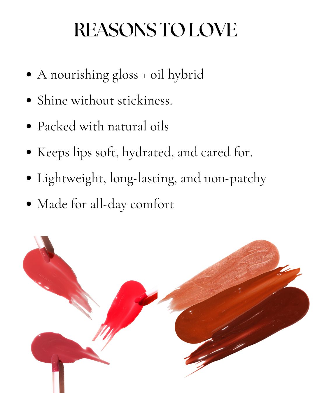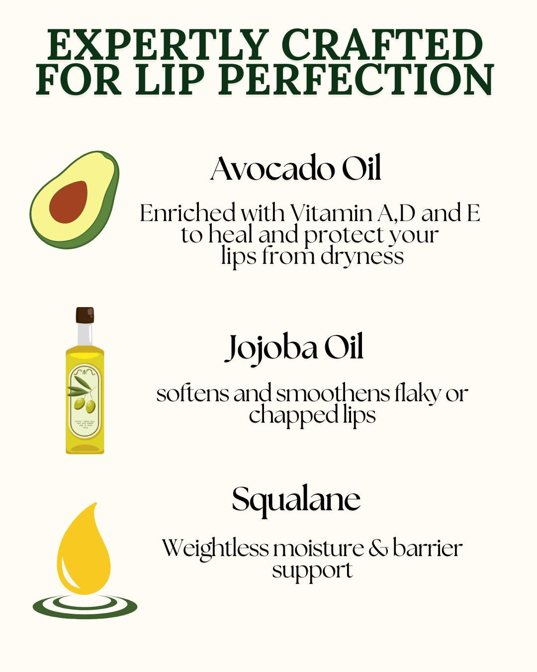 INGREDIENTS- Ricinus Communis(Castor) Seed Oil, Simmondsia Chinensis (Jojoba) Seed Oil, Polyisobutene, Caprylic/Capric Triglyceride, Persea Gratissima (Avocado) Fruit Oil, Copernicia Cerifera (Carnauba) Wax, Mica, Squalane, Prunus Amygdalus Dulcis (Sweet Almond) Oil,Pigment